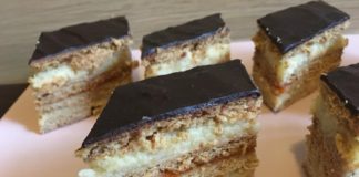Érdemes előző nap elkészíteni a süteményt, hogy fogyasztásra jól megpuhuljanak a tésztalapok.