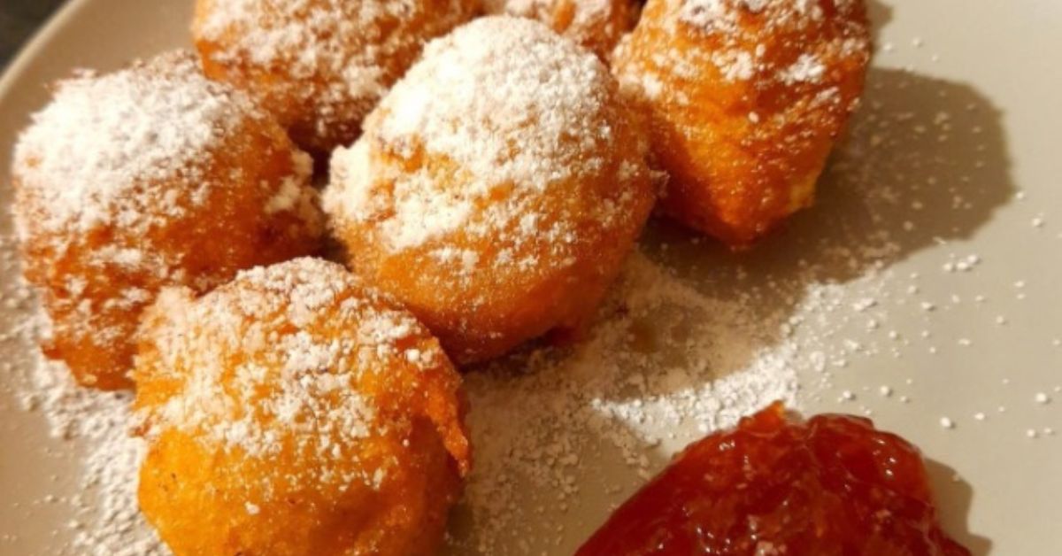 A hozzávalókat alaposan összekevertem, kanállal forró olajba szaggattam. Amikor szép aranybarnára sültek, porcukorral és lekvárral tálaltam.